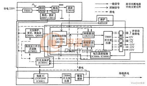 圖1 TCL-HiD432/522 型背投彩電電源電路構(gòu)成方框圖