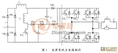 單相整流橋輸出的直流電壓接入無(wú)源緩沖軟開(kāi)關(guān)Boost電路,本文采取Boost電路取代傳統(tǒng)的LC濾波電路。這里Boost電路主要有2個(gè)作用:一是提高整流輸入側(cè)的功率因數(shù);二是為逆變側(cè)提供一個(gè)穩(wěn)定的直流電壓。Boost校正電路輸出直流電壓加到逆變橋上,逆變橋是由8個(gè)IGBT模塊組成的單相全橋逆變器,每個(gè)IGBT都有一個(gè)反并聯(lián)二極管與其并聯(lián),作為逆變器電壓反向時(shí)續(xù)流。逆變器*率器件由控制電路控制脈沖信號(hào)驅(qū)動(dòng)而周期性的開(kāi)關(guān);隔離變壓器T的作用是電氣隔離和負(fù)載的阻抗匹配。一般T為降壓變壓器,適當(dāng)改變變壓器的變比即可降低諧振槽路中電感、電容上的電壓值,并可進(jìn)行不同的負(fù)載阻抗匹配。輸出方波電壓經(jīng)過(guò)變壓器的隔離降壓后加到由補(bǔ)償電容器和感應(yīng)線(xiàn)圈及負(fù)載組成的諧振回路上。