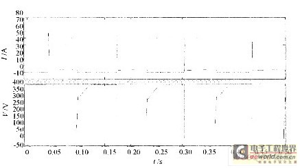 圖6 移相角為90度時(shí)的輸出電流電壓