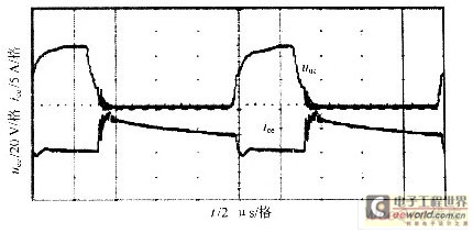 圖7 升壓電路開(kāi)關(guān)管的電壓電流試驗(yàn)波形