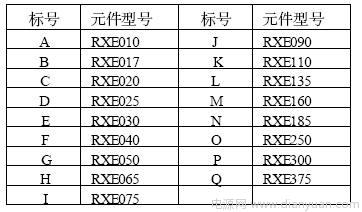 表1 RXE系列元件20℃時的電氣特性
