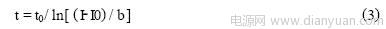 式中t0,I0,b均為常數(shù)。由圖1曲線部分曲線取若干特殊點,經(jīng)計算機進行數(shù)學(xué)處理,得到t0,I0,b的具體數(shù)值: