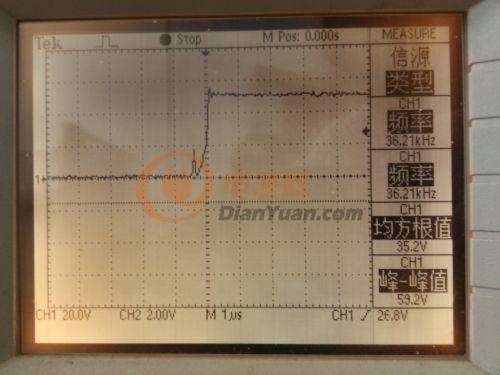 輸入24V滿載1000W時前級MOS的D極的波形: