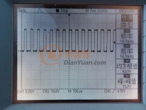 1、單極性倍頻調(diào)制,載波設(shè)定為14.7K,實際后級LC工作在倍頻29.4K;