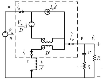 上圖中方框的部分均可以等效為下圖,電流連續(xù)模式時(shí)滿足: