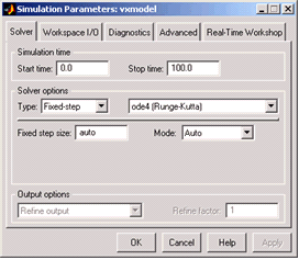 模型采用外部工作模式(External Mode),并設置Simulink Parameters對話框中的參數(shù):
