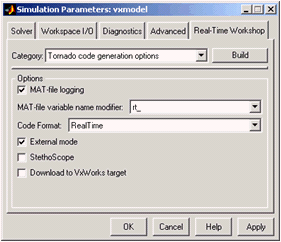 RTW提供了幾個快速原型化的目標,其中包括提供了從Simulink模型到VxWorks應用代碼的自動轉換接口Tornado Real-Time Target,可以讓用戶的模型在VxWorks上執(zhí)行。