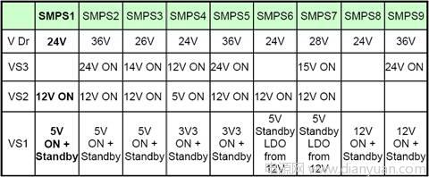 另外,在液晶電視應用中,實現(xiàn)良好的交叉穩(wěn)壓是一項設計挑戰(zhàn),因為容限非常嚴格(通常為±5%),且由于音頻放大的大動態(tài)范圍,以及信號處理電源負載根據(jù)輸入視頻源的不同而變化,動態(tài)工作可能大范圍地變化。本參考設計基準型(SMPS1)的典型輸出電壓及負載范圍是: