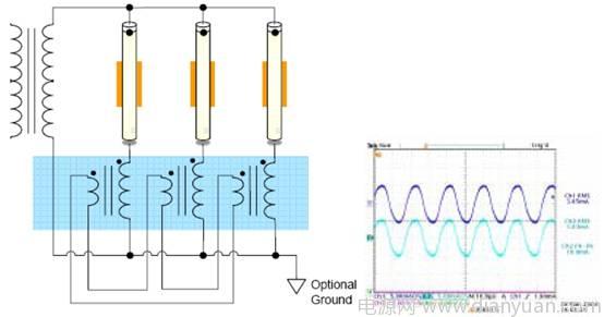 所有燈采用單輸出高壓變壓器“同相(in phase)”驅(qū)動