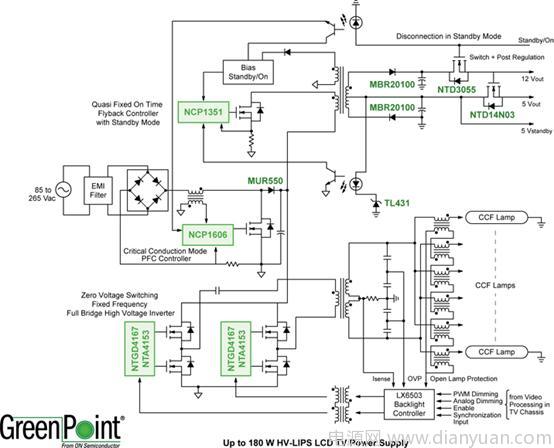 圖2:安森美半導體32英寸高壓LIPS液晶電視電源參考設計功能框圖
