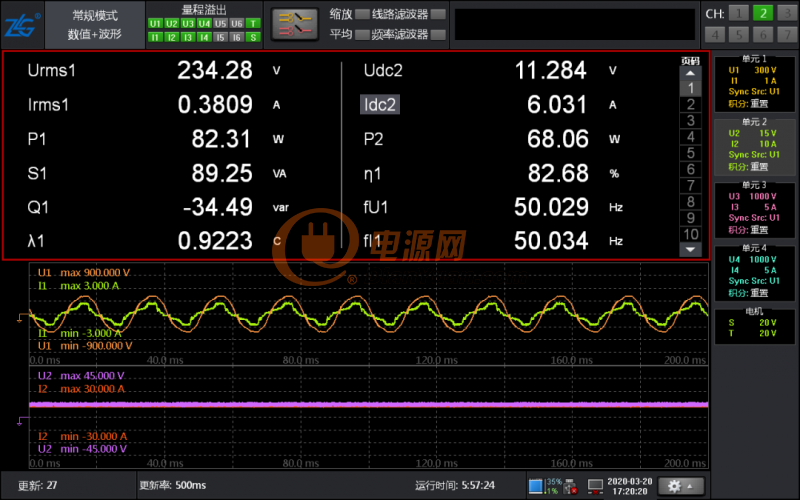 PA 功率分析儀可對(duì)電源的輸出電壓、電流、功率、諧波及轉(zhuǎn)換效率等參數(shù)進(jìn)行準(zhǔn)確測(cè)量,致遠(yuǎn)的 PA5000H 功率分析儀擁有 0.05%功率測(cè)量精度,5MHz 帶寬以及豐富的諧波測(cè)量功能廣泛適用于電源產(chǎn)品的研發(fā)與測(cè)試。