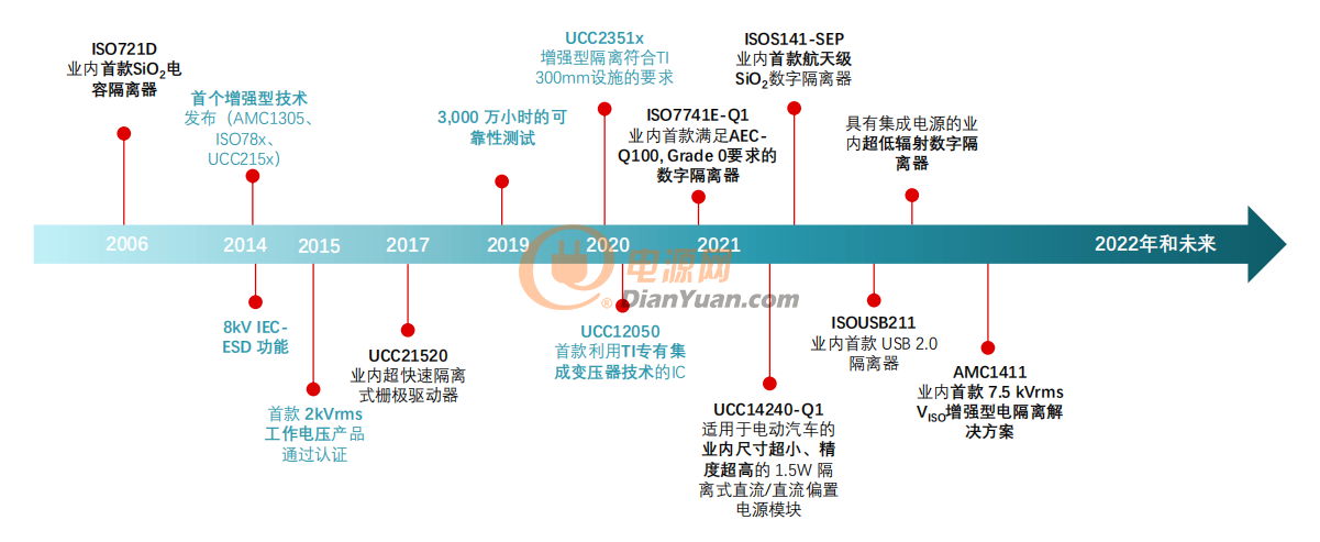 TI一直深耕隔離領域的創(chuàng)新。從2006年推出業(yè)內首款SiO2電容隔離器ISO721D,到發(fā)布和認證多千伏級產品,進行幾百萬小時的可靠性測試和投資開發(fā)300mm制造領域的隔離技術、高壓系統(tǒng)的隔離技術,再到增加數(shù)字隔離器、隔離式ADC、隔離式放大器等產品線,TI不斷以更創(chuàng)新、更經濟的方式應對隔離挑戰(zhàn)。TI預測,隔離是從現(xiàn)在起的10年內整個行業(yè)將出現(xiàn)的五大趨勢之一,五大趨勢包括隔離、低EMI、功率密度、低靜態(tài)電流、低噪聲和高精度。
