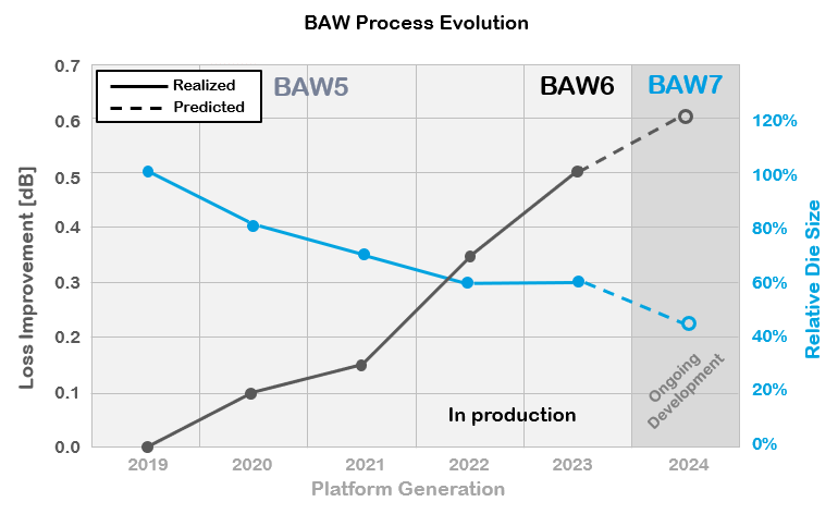 圖10. Qorvo BAW 6與BAW 7工藝的優(yōu)勢——以U-NII 2c-3濾波器為例