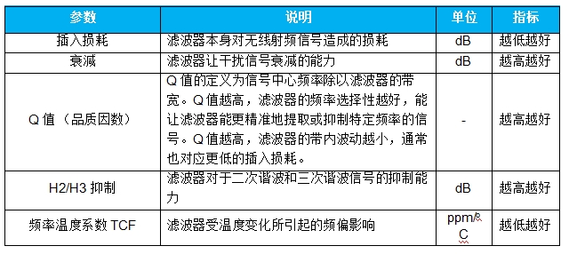 圖7為典型的濾波器工作響應。濾波器的關鍵參數(shù)關系到無線射頻系統(tǒng)的傳輸質(zhì)量與效率,表1列出了濾波器的關鍵參數(shù)以及選擇一個好濾波器的標準。
