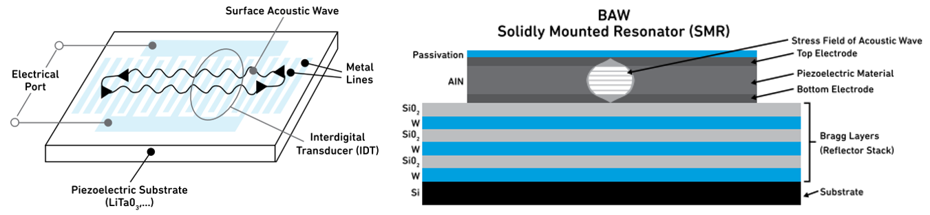 圖5. SAW與BAW的結(jié)構(gòu)差異