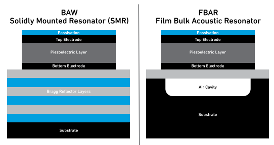 圖6. BAW與FBAR的結(jié)構(gòu)差異