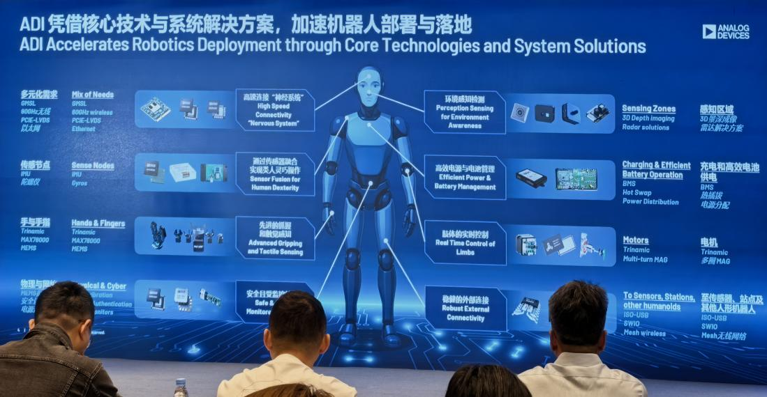 2025年9月16日,北京豐大國際大酒店內(nèi)思想激蕩,ADI以“激活邊緣智能,共繪具身未來”為主題,舉辦人形機(jī)器人媒體分享會。ADI公司院士兼技術(shù)副總裁陳寶興博士領(lǐng)銜,與多位行業(yè)專家共話人形機(jī)器人核心技術(shù),深度解讀工業(yè)智能未來發(fā)展趨勢,展示了從核心技術(shù)到系統(tǒng)解決方案的全套產(chǎn)品矩陣,更通過圓桌論壇深度探討人形機(jī)器人商業(yè)化路徑,為產(chǎn)業(yè)發(fā)展注入新思考。這場集技術(shù)展示、行業(yè)洞察與生態(tài)共建于一體的盛會,為推進(jìn)人形機(jī)器人從實驗室走向工廠,從概念走向現(xiàn)實注入強(qiáng)勁動能。