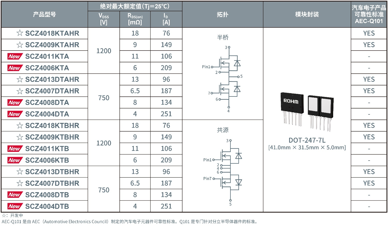 產品陣容包括750V耐壓的4款機型(SCZ40xxDTx)和1200V耐壓的4款機型(SCZ40xxKTx)。新產品已于2025年9月開始暫以月產1萬個的規(guī)模投入量產(樣品價格:20,000日元/個,不含稅)。另外,符合汽車電子產品可靠性標準AEC-Q101的產品,也計劃于2025年10月開始提供樣品。