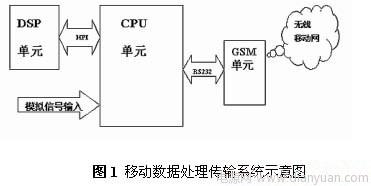 本文設計了一種基于Ti公司低功耗DSP芯片和Cygnal低功耗的混合信號系統級單片機移動數據處理傳輸系統,它能夠采集、處理和通過無線移動網傳送和接收數據。該系統主要由DSP、CPU,GSM三個單元組成,并以CPU單元為核心。Cygnal單片機可以進行A/D轉換,CPU單元將A/D轉換后的模擬信號通過HPI總線送入DSP單元進行數據處理;處理的結果再通過HPI總線送入CPU單元。CPU單元通過串口控制GSM單元通過無線移動網傳送和接收數據。該系統具有體積小、便于攜帶、功耗低、可使用電池供電的特點,因而主要應用于要求移動數據處理傳輸的小型或便攜儀器上使用。