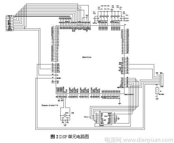 DSP單元將CPU單元通過HPI總線送來的A/D轉換后的原始數據信號進行多種高速運算,運算的結果再通過HPI總線送入CPU單元。DSP單元可以承擔信號預處理、信號的檢測及分類等實時性要求高、計算量大的算法。這里選用Ti公司TMS320-54系列DSP中的TMS320VC5409[1]芯片。TMS320C54X是為實現低功耗、高性能和低成本而專門設計的定點DSP芯片。TMS320C54X的主要特點包: