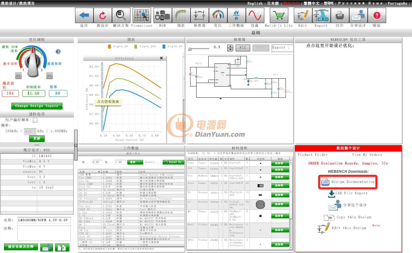 在頁(yè)面右下“您的整個(gè)設(shè)計(jì)”中可以選擇輸出文件資料,包括BOM,原理圖,工作圖表,工作數(shù)值等。