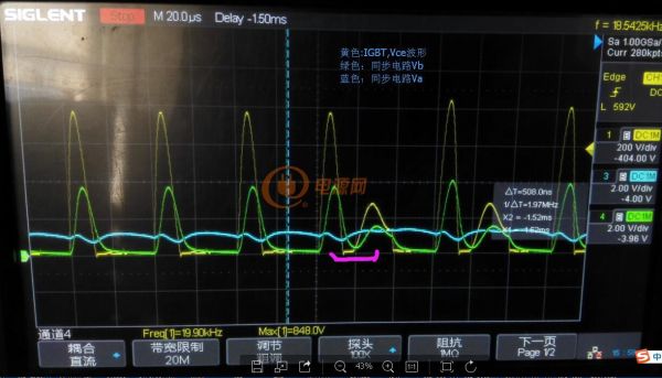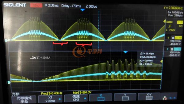 電磁爐,觀察線(xiàn)盤(pán)兩端Va,Vb的波形的時(shí)候,出現(xiàn)異常:震蕩的時(shí)候,失去了一個(gè)!