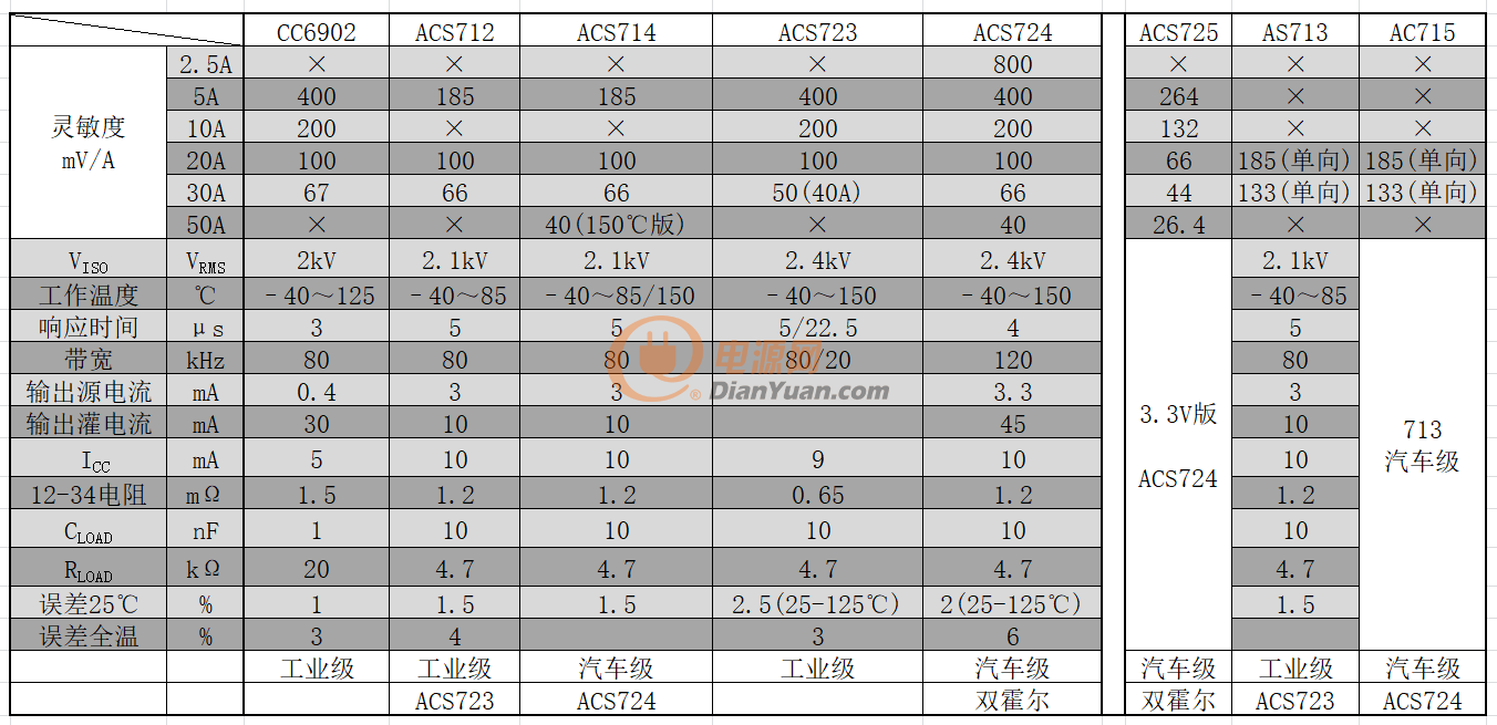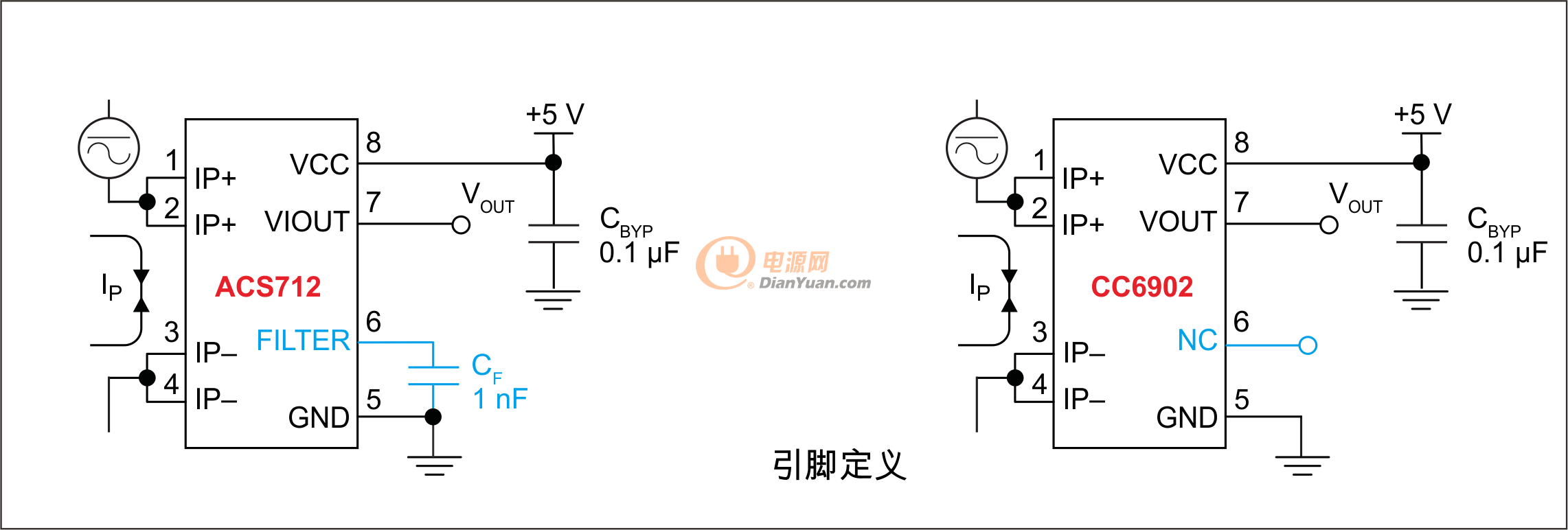 1.CC6902分別采用SOP8封裝,直接可替代ACS712、ACS714、ACS723、ACS724系列,ACS725系列看具體應(yīng)用可以替代。