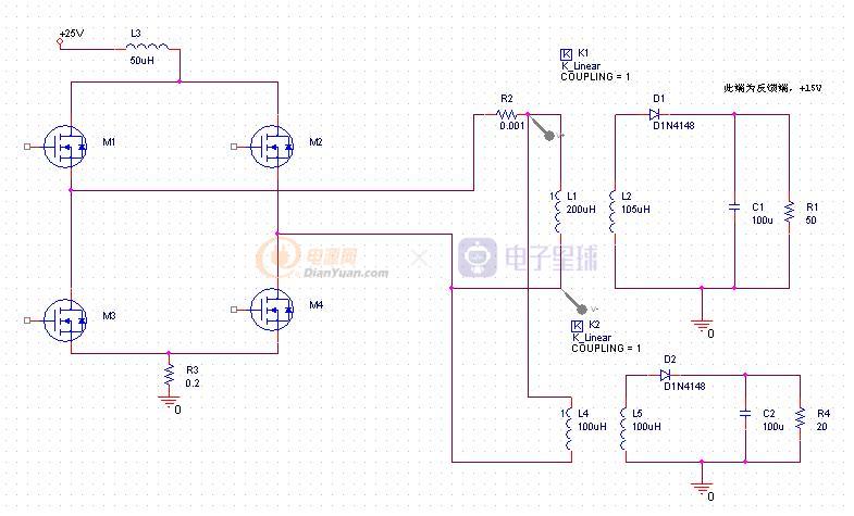 另,電路里面,有一個(gè)變壓器并聯(lián),主要的負(fù)載在下面的變壓器副邊,