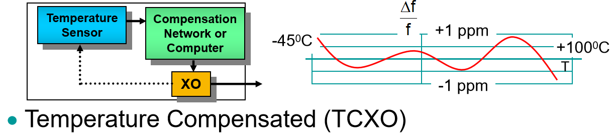 溫度傳感器實時監(jiān)測環(huán)境溫度,補償網(wǎng)絡或計算器根據(jù)溫度變化計算出所需的頻率補償量,系統(tǒng)對水晶振蕩器的輸出頻率進行動態(tài)調(diào)整。