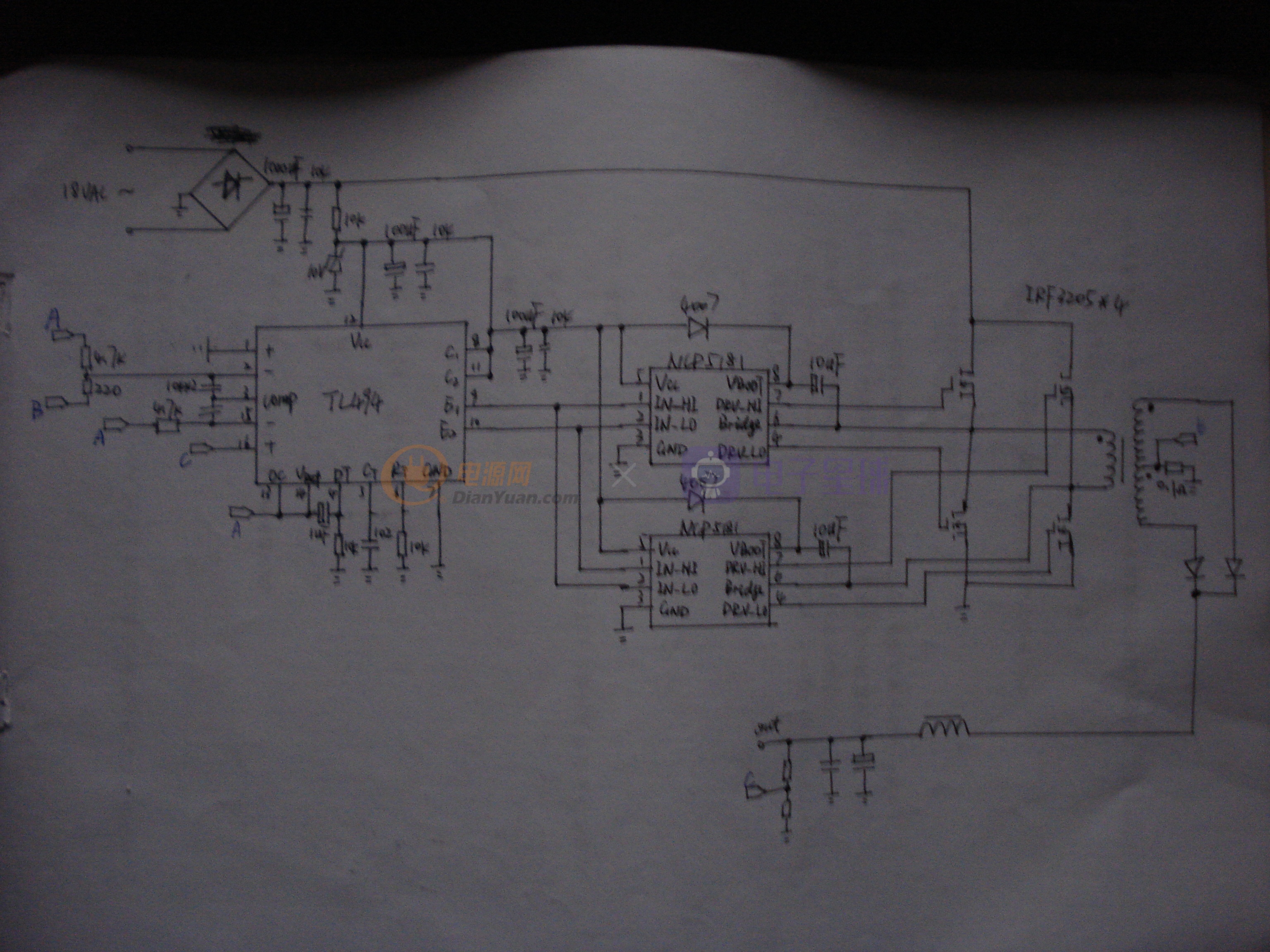 圖后來有改過,每只管子加了并了RC緩沖,那只穩(wěn)壓管又多加了一支8550給494和5181供電.靜態(tài)電流70mA左右.