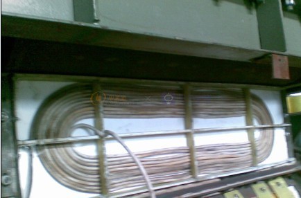 順便貼個2005年做的12KW電磁飯箱線圈出來。試制用線圈,不講究好看,沒有風冷,沒有托架之類的,僅有耐高溫膠固定。線圈密繞,鍋底發(fā)熱均勻,飯不糊,燒的飯的口感介于電飯鍋燒的飯與蒸飯的效果之間。