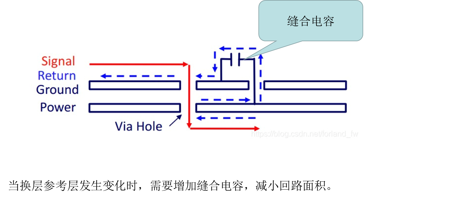 但在實(shí)際情況中,上述參考電源層的情況是不建議存在的,因?yàn)榭p合電容的容值很難選擇。