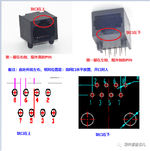 2.為了避免類似錯誤再次發(fā)生,我們也可以對RJ45的PIN腳定義做一個總結,因為RJ45也是屬于標準器件,其實它的第一PIN也是標注,就算我們不看規(guī)格書,只要理解了它的標準定義,也是可以知道它的第一PIN。