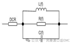 磁珠的等效電路是一個直流電阻(DCR)串聯(lián)一顆電感、電容、電阻的并聯(lián),其中并聯(lián)的電阻、電容、電感都是頻率的函數(shù),感抗、容抗受工作頻率影響很大。