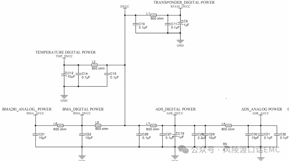 磁珠用于芯片不同模塊電源之間的噪聲隔離