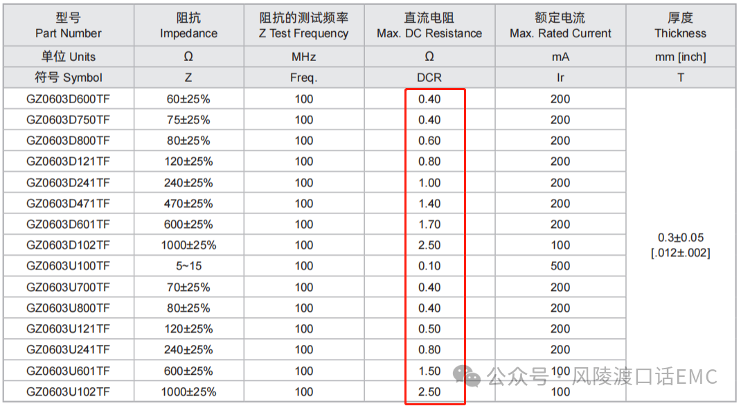 磁珠參數(shù)選擇主要關(guān)注磁珠額定電流、直流阻抗(DCR)、阻抗頻率曲線。