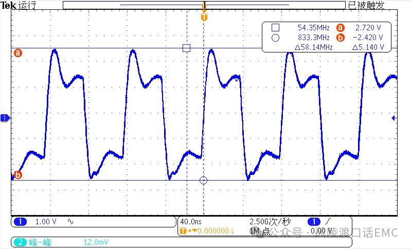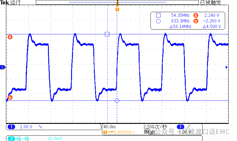信號增加300ohm磁珠+22pF電容組成低通濾波器波形