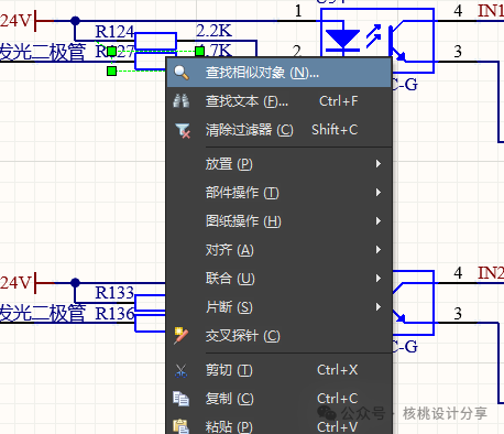 (4)如下圖所示,可以看到原理圖中所有的電阻都高亮了(即使是不同的阻值也會高亮)。