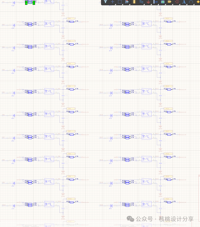 (1)首先打開原理圖,選中原理圖中最多的某個器件,比如下圖中的電阻:
