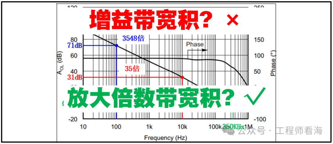 這里有一個(gè)誤區(qū),也是容易讓人迷惑的地方,雖然叫做增益帶寬積,但是做計(jì)算時(shí)用的單位是放大倍數(shù),而不是dB,所以增益帶寬積其實(shí)是等于開(kāi)環(huán)放大倍數(shù)*頻率。