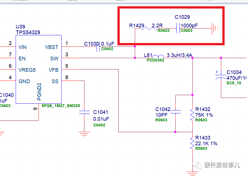 5,SW節(jié)點(diǎn)增加RC尖峰吸收電路(前期設(shè)計(jì)預(yù)留)。如下圖紅框所示: