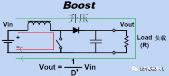 Boost變換器是一種升壓式非隔離開關(guān)電源,當(dāng)開關(guān)管導(dǎo)通時,輸入電源通過電感給電感充電,電感存儲能量;當(dāng)開關(guān)管關(guān)斷時,輸入電源和電感能量通過續(xù)流二極管給輸出供電;如此反復(fù)即可維持輸出產(chǎn)生一個恒定的電壓。