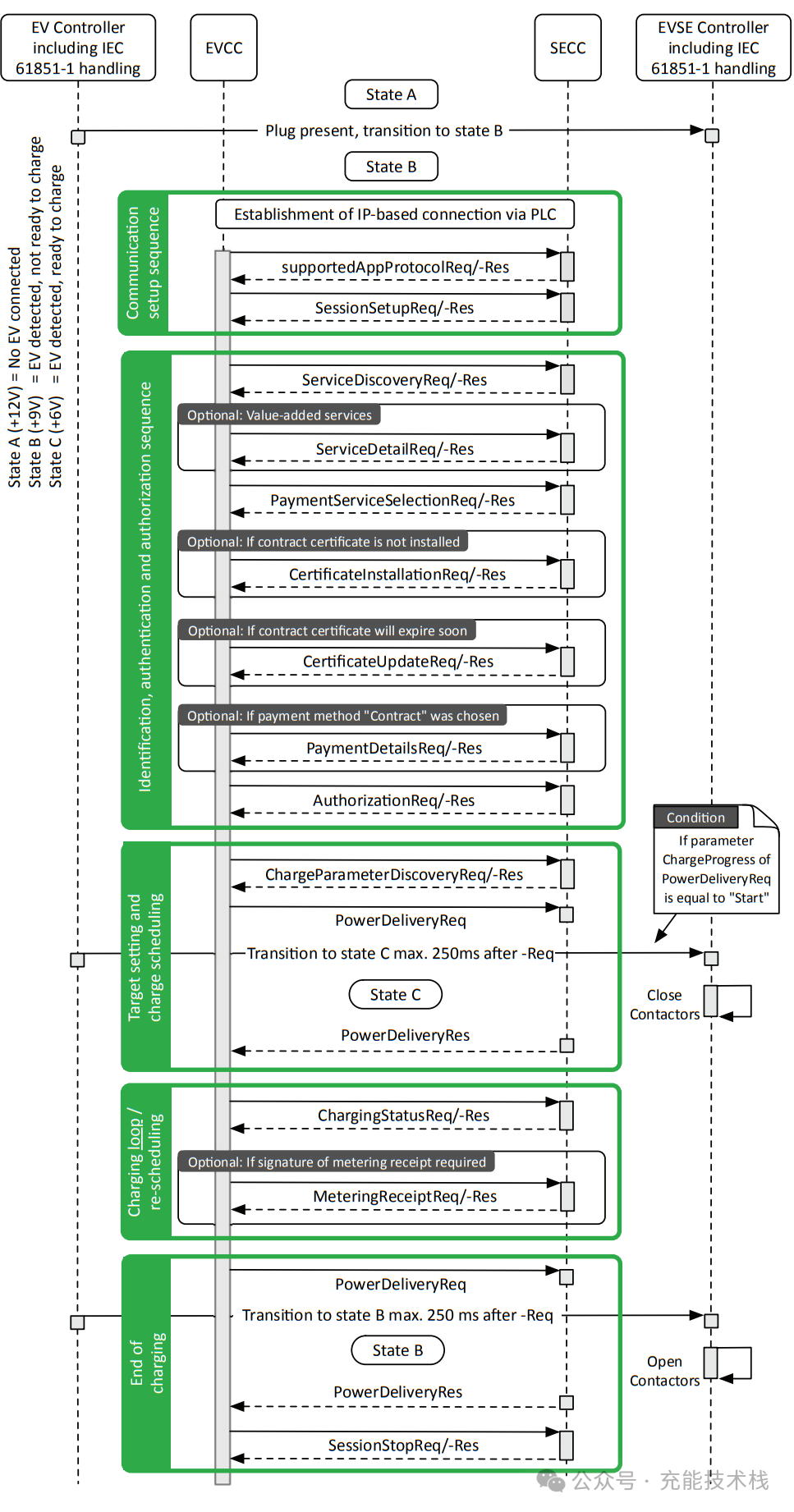 SessionSetup:用于為通信會話分配唯一的會話ID。會話可以暫停,稍后使用相同的會話ID恢復(fù)。在這種情況下,將再次應(yīng)用之前商定的充電參數(shù),以確保充電按照駕駛員最初的意圖繼續(xù)進行。