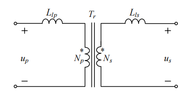 在實(shí)際的平面變壓器中,原副邊的磁通不會(huì)完全耦合,這部分未耦合的磁通產(chǎn)生的電感即為漏感。圖中給出了平面變壓器漏感等效模型。其中 Llp為原邊漏感,Lsp為副邊漏感。