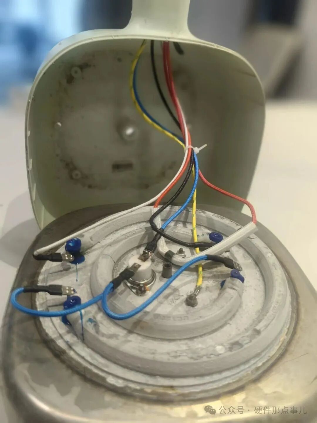 咱們繼續(xù)往下拆,接下來就是電煮鍋內(nèi)部了,這個做工嘛,看著還可以的,加熱管鋪設的面積還是挺大的,線材布設也比較規(guī)整簡潔。